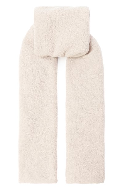 Шарф связали из буклированной кашемировой пряжи, усиленной нейлоном. Размеры позволяют носить аксессуар как палантин или завязать объемный узел.