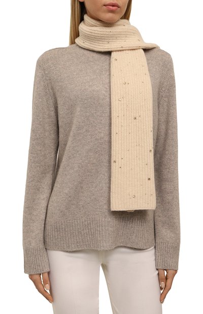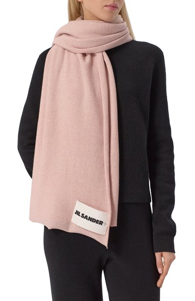 Длинный широкий шарф можно носить как палантин. Для изготовления однотонного аксессуара использовали пряжу из чистого кашемира.