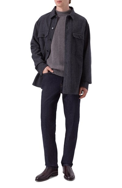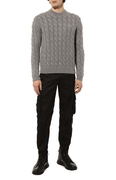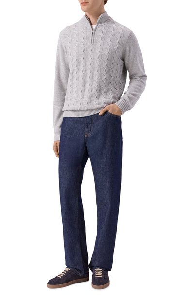 Свитер с круглой горловиной, манжетами и поясом в рубчик связали из буклированной кашемировой пряжи с добавлением шелка. Модель со спущенной линией плеч гармонично дополнит повседневный гардероб.