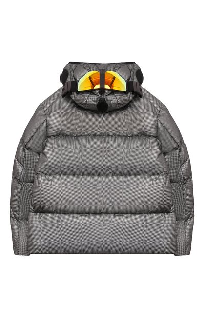 Стеганую куртку на гусином пуху выполнили из влагоотталкивающего японского нейлона плотностью 20 ден. Спереди изделие украсили накладкой-эмблемой, а съемный капюшон дополнили брендированной пластиной. Модель с двумя карманами застегивается встречной молнией.
