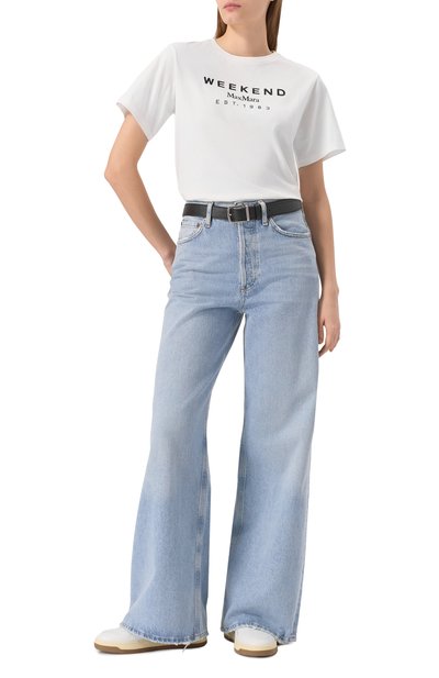Укороченную футболку Art Trip Shrunken из хлопкового джерси дополнили сзади разрезом, затягивающимся шнуром с фиксатором. Спереди модель с отворотами на цельнокроеных рукавах украсили брендированным принтом.