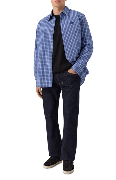 Клетчатую рубашку Rosebowl с фигурным низом и двумя карманами с клапанами выполнили из хлопковой фланели оттенка Salted Blue. Модель украсили вышитым логотипом, а также фирменными мотивами T-box и 4x4.