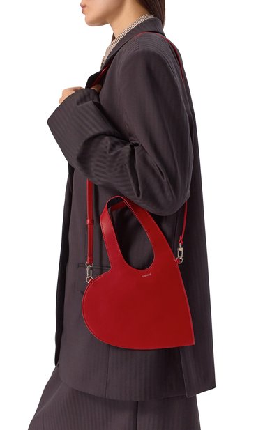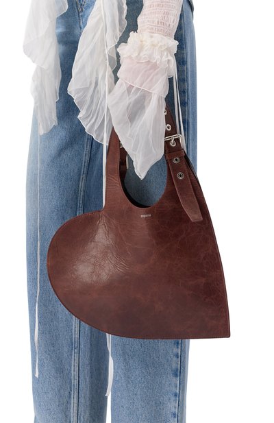 Сумка Heart обязана своим названием форме в виде сердца. Модель с регулируемыми цельнокроеными ручками и фольгированным логотипом спереди выполнили из гладкой кожи.