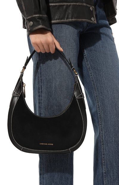 Для создания сумки в форме сердца использовали металлизированную кожу с контрастной внутренней отделкой. Аксессуар с короткими ручками дополнили съемным плечевым ремнем, который регулирует ся по длине.