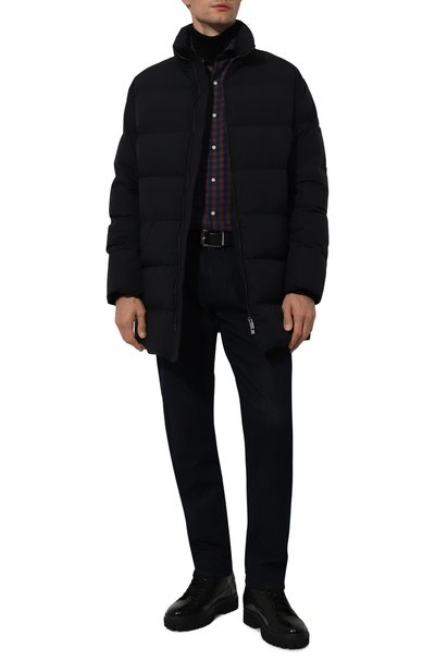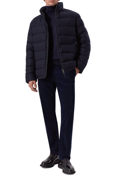 Стеганую куртку Theus на утином пуху выполнили из шерсти с добавлением вискозы. Модель с двумя внешними и внутренними карманами дополнили капюшоном, интегрированным в воротник-стойку. В пуховике с трикотажными манжетами и потайной кулиской будет комфортно при температуре от -15°C до +5°C.