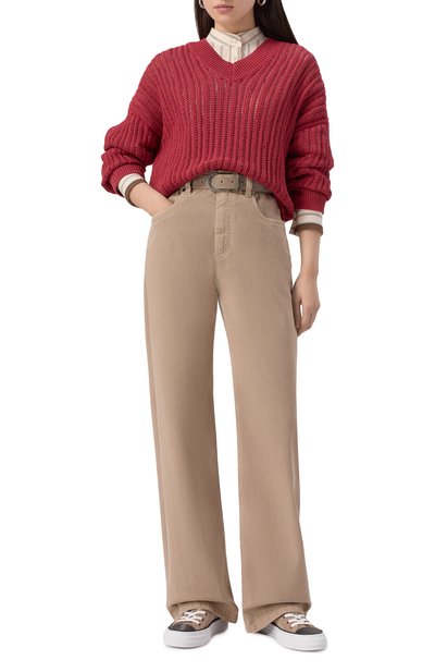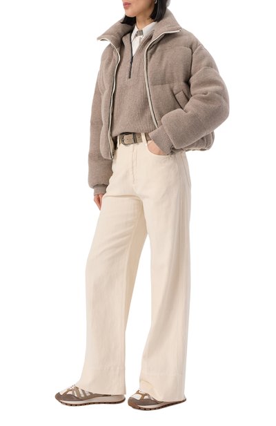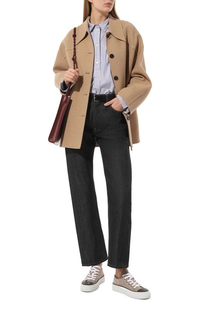 Кеды на широкой резиновой подошве сшили из замши и отделали внутри овчиной. Фирменный декор Double Buckle по бокам и накладку на заднике покрыли миниатюрными стразами.