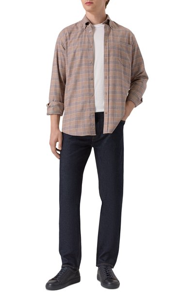 Кеды Cleanic выполнили из матовой кожи, утеплив их овчиной. Модель установили на широкую резиновую подошву с тисненым логотипом. О принадлежности пары марке говорит и стежок фирменного оранжевого оттенка Arancio Santoni.