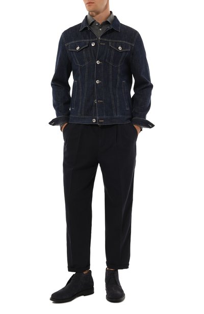 Дерби с рельефным швом, обрамляющим мыс, установили на массивную протекторную подошву. Для изготовления модели использовали выделанную вручную замшу.