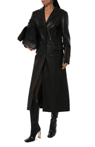 Сапоги Anna с квадратным мысом, свободным голенищем и высоким каблуком сшили вручную из гладкой кожи. Модель без декора застегивается молнией сбоку.
