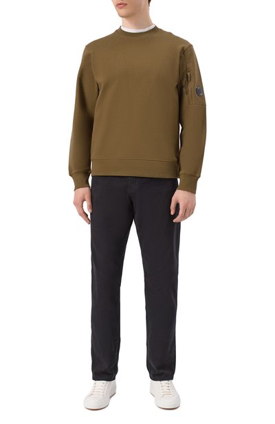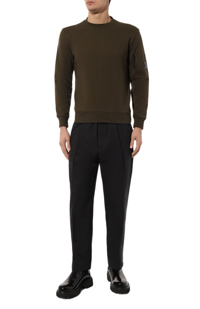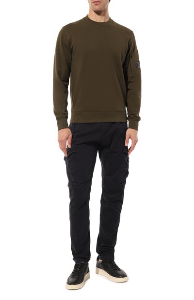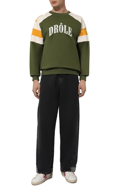 Для изготовления свитшота с отделкой в рубчик использовали стрейчевый хлопковый трикотаж. Спереди модель прямого кроя декорировали логотипом пилотажной группы Frecce Tricolori и вышитой эмблемой ВВС Италии.