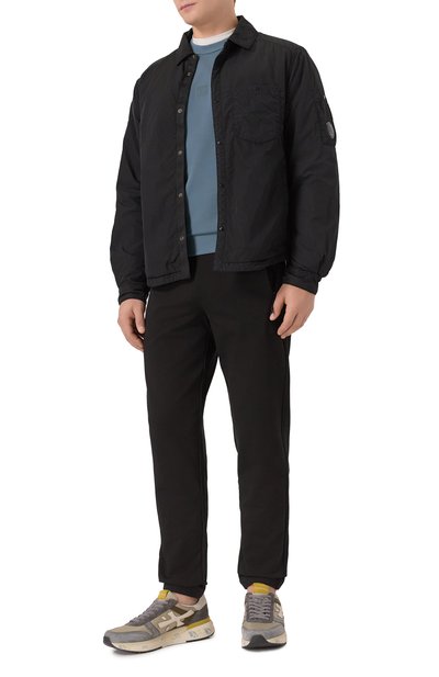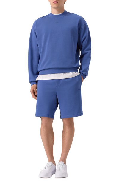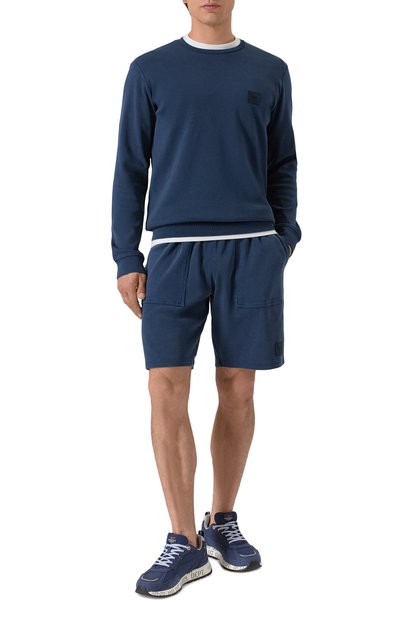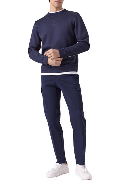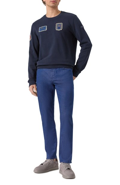Для изготовления свитшота с отделкой в рубчик использовали стрейчевый хлопковый трикотаж. Спереди модель прямого кроя декорировали логотипом пилотажной группы Frecce Tricolori и вышитой эмблемой ВВС Италии.