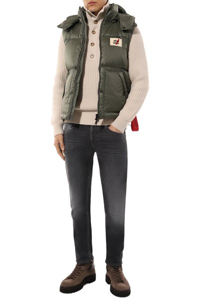 Утепленный синтепоном жилет с четырьмя боковыми карманами выполнили из нейлонового рипстопа. Стеганая модель с регулируемым капюшоном, полукольцом на спинке и фирменной вышивкой на груди застегивается молнией и пуговицами.