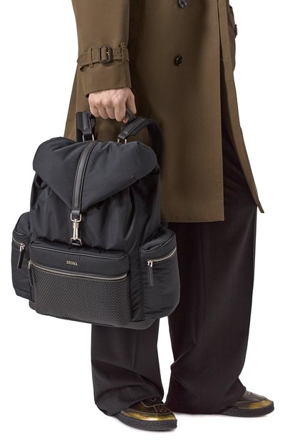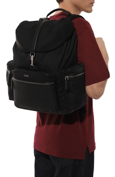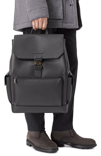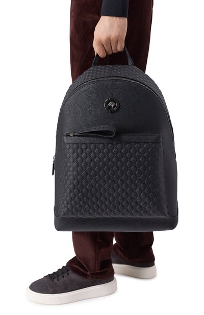 Рюкзак Twins с короткой ручкой, регулируемыми лямками и шлевкой на текстильной задней панели выполнили из тисненой телячьей кожи. Аксессуар с двумя отделениями и внутренними карманами дополнили еще одним отсеком снаружи, закрепленным ремешками с фирменными пряжками Gancini.