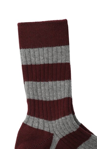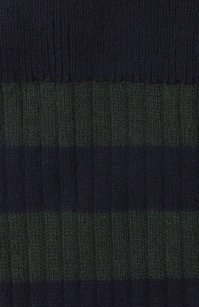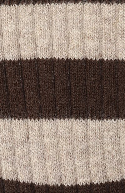 Полосатые носки в рубчик связали из стрейчевой хлопко вой пряжи с добавлением полиамида. Аксессуар с усиленными зонами нагрузки дополнили широкой эластичной манжетой.