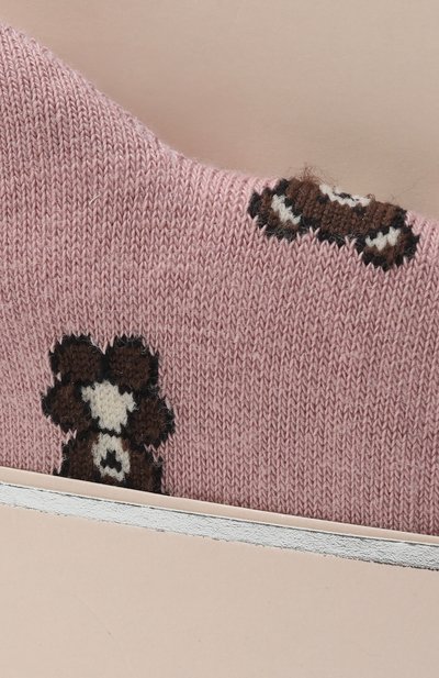Высокие носки с жаккардовым паттерном в виде медвежат выполнили из эластичной хлопковой пряжи с добавлением нейлона. Модель дополнили манжетой в рубчик.