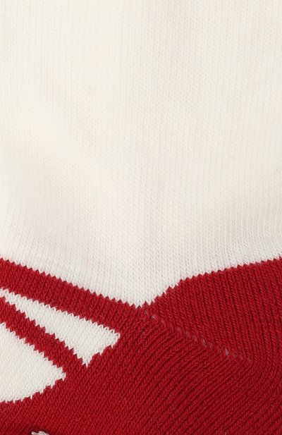 Носки с высоким паголенком украсили бантом и жаккардовым узором, имитирующим балетки Мэри Джейн. Модель выполнена из эластичного хлопкового трикотажа.