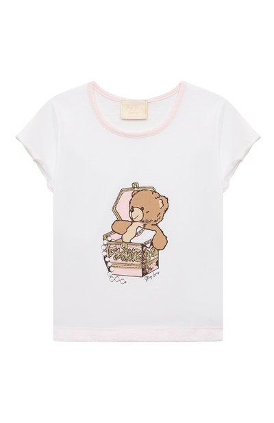 Пижаму с пастельным фантазийным принтом выполнили из хлопкового твила. Рубашка с узким кантом в тон, нагрудным карманом застегивается перламутровыми пуговицами. Посадка брюк регулируется эластичным поясом.