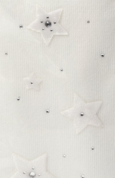 Колготки изготовили из эластичной нейлоновой микрофибры. Модель с широким поясом украсили аппликацией в виде полосы и банта из термостразов.