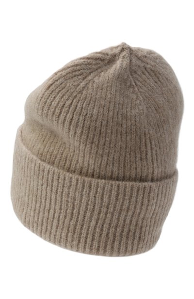 Для изготовления шапки бини ребристой вязки использовали пряжу из кашемира и шерсти. Лаконичное изделие дополнили широким отворотом.