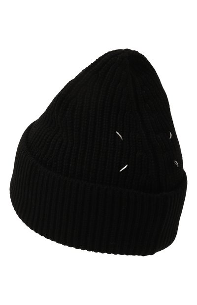 Шапку бини выполнили ребристой вязкой из пряжи на основе кашемира и шерсти, соединенных в равных пропорциях. Изделие дополнили широким отворотом.
