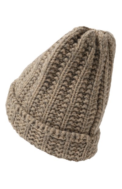 Шапку выполнили ребристой вязкой из пряжи, в составе которой соединили поровну кашемир и шерсть. У модели с наушниками предусмотрели широкий отворот.