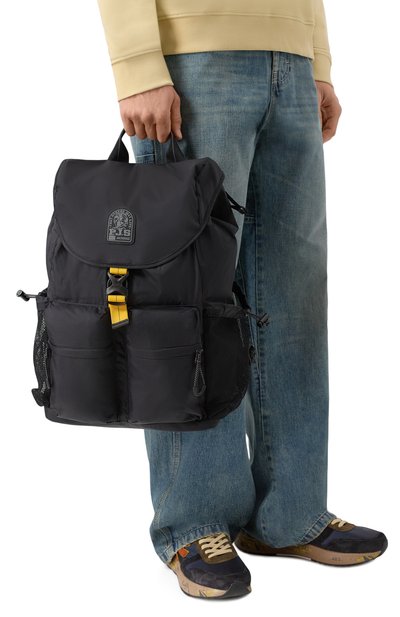 Рюкзак с плотной сетчатой спинкой выполнили из фирменного непромокаемого материала Typhoon® 20000. Модель дополнили сбоку карманами с кулисками, спереди – двумя накладными с клапанами на кнопках, а в основном отделении – слотом для ноутбука. Аксессуар с компрессионными лентами по бокам закрывается откидным клапаном с фастексами на ремешках.