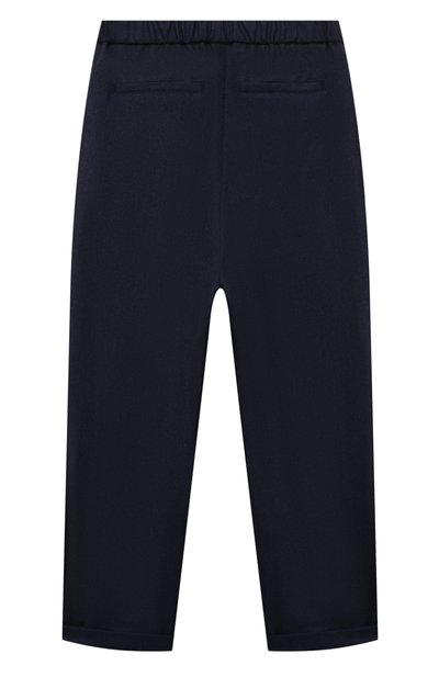 Для создания брюк с эластичным поясом-кулиской выбрали микс полиэстера, вискозы и шерсти. Помимо задних карманов на пуговицах предусмотрели боковые, украсив левый вышитой монограммой DG.