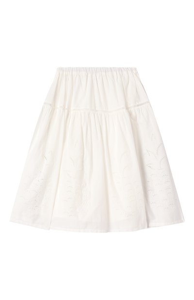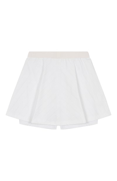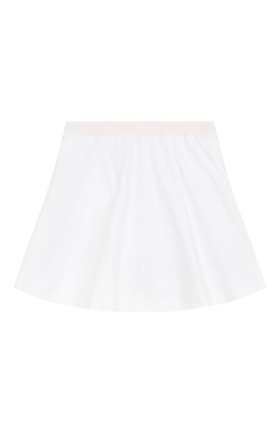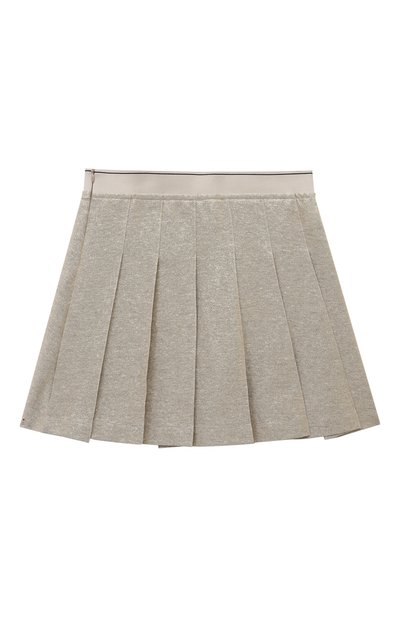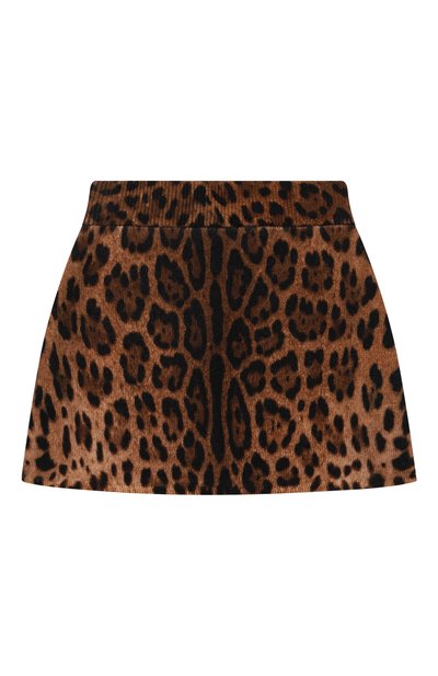 Юбку с эластичным поясом в рубчик связали из шерсти первого пострига. Модель украсили леопардовым принтом, а внизу разместили металлическую монограмму DG.