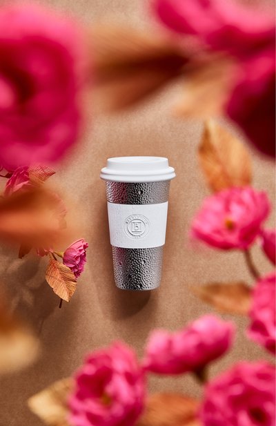 С кружкой из лиможского фарфора, который долго поддерживает температуру содержимого, можно наслаждаться любимыми напитками в любом месте. Модель дополнили крышкой и фактурной брендированной манжетой из силикона — будет удобно держать в руках. Еще одно достоинство изделия — возможность мыть его в посудомоечной машине.