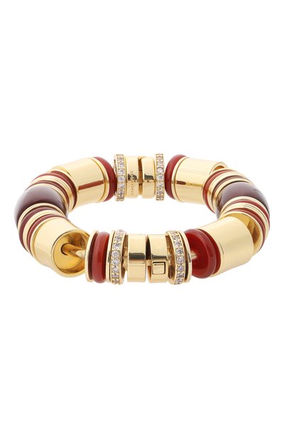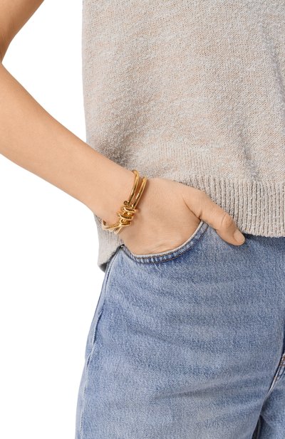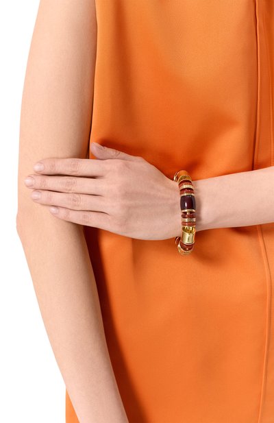 Браслет-ремешок из телячьей кожи можно дважды обернуть вокруг запястья или носить на шее вместо чокера. Регулируемый аксессуар с застежкой на пряжку дополнили четырьмя скользящими латунными шармами с кристаллами и монограммой DG.
