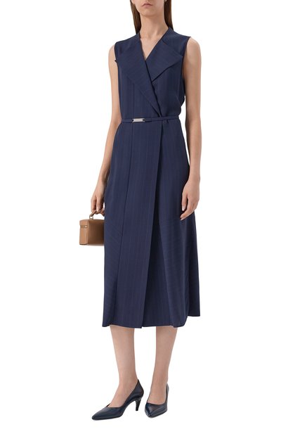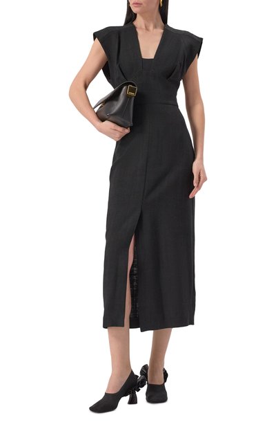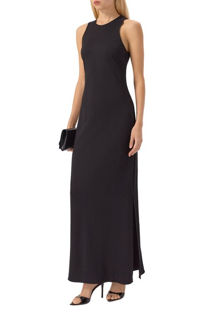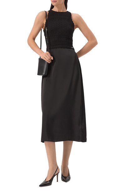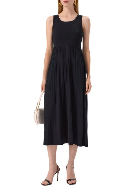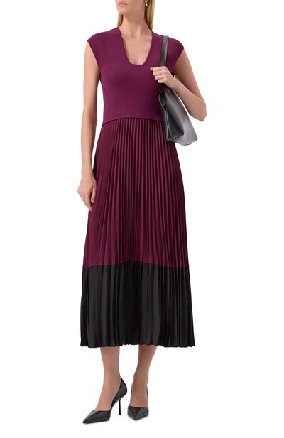 Приталенное миди-платье Flissani будто составили из топа с глубоким вырезом и плиссированной юбки. Облегающий лиф с брендированной пластиной на спинке сшили из вискозного трикотажа, а подол с контрастной панелью – из полиэстера.