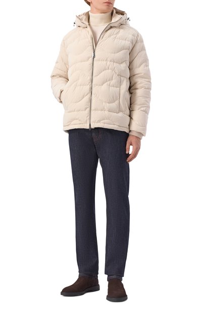 Челси Calev с закругленным мысом выполнили из замши. Рядом с одной из боковых эластичных вставок на голенище разместили вышивку в оттенках фирменного триколора, а каблук украсили оттиском-логотипом.