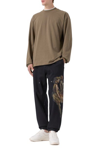 Лонгслив Tacks выполнили из хлопкового джерси. Спереди модель силуэта Regular fit украсили брендированным патчем в тон, а горловину с изнанки дополнили окантовкой фирменного оранж евого оттенка.