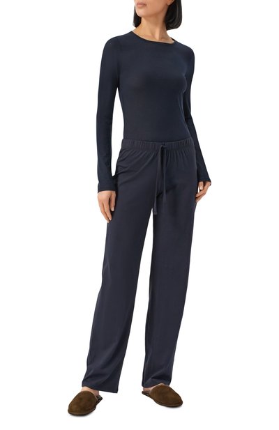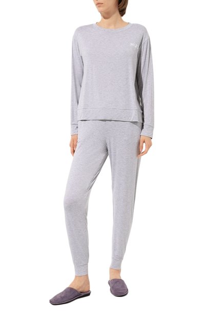Свитшот с контрастным логотипом спереди подойдет для сна и домашнего отдыха. Модель с круглой горловиной в рубчик выполнили из трикотажа на основе органического хлопка.