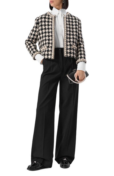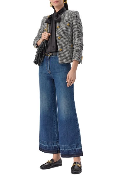 Лоферы с круглым мысом, на низком каблуке выполнили из козьей кожи. Модель с фигурной союзкой украсили перемычкой в виде цепочки из металла двух оттенков.