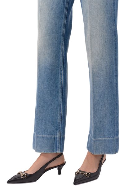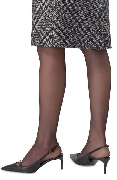 Туфли Signoria на каблуке kitten heel, названные в честь центральной площади Флоренции, выполнили из гладкой кожи. Эластичный ремешок модели украсили цепочкой панцирного плетения с логотипом.
