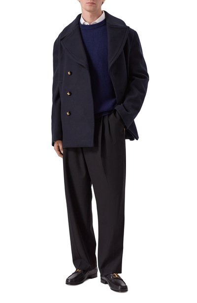 Лоферы Horsebit 1953 с мокасиновым швом и перфорированным узором в виде монограмм GG выполнены из мягкой кожи. Модель с миндалевидным мысом дополнили металлической пряжкой-трензелем на фигурной перемычке.