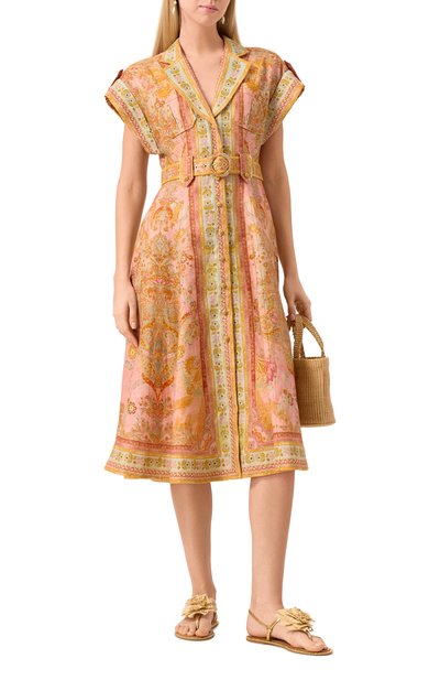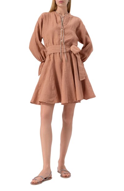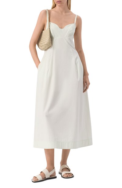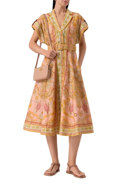 Сандалии, застегивающиеся миниатюрной пряжкой сбоку, выполнили из гладкой кожи. Т-образную перемычку украсили фигурной вставкой из бамбука.