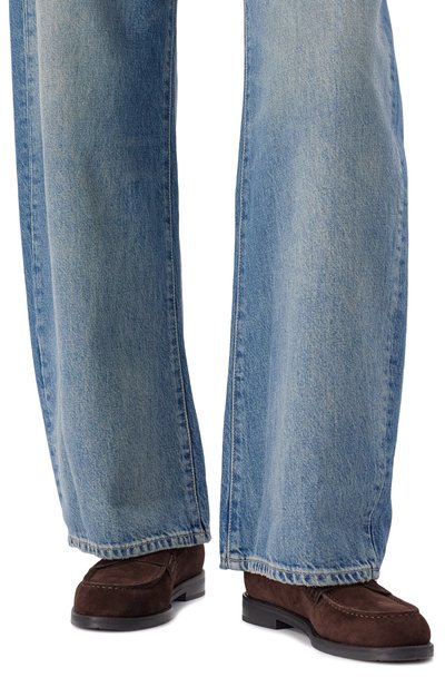 Лоферы Ellis с драпированным мысом и кожаным подкладом сшили из замши. Туфли с низким каблуком украсили перемычкой с золотистой эмблемой марки.