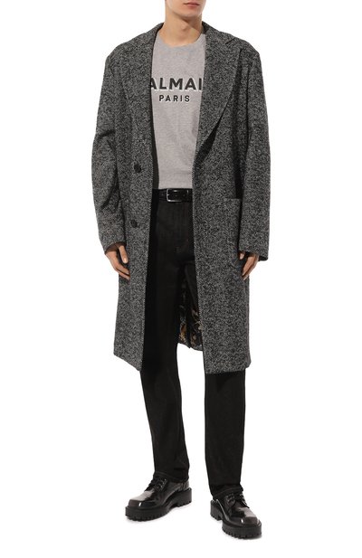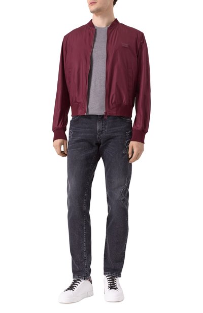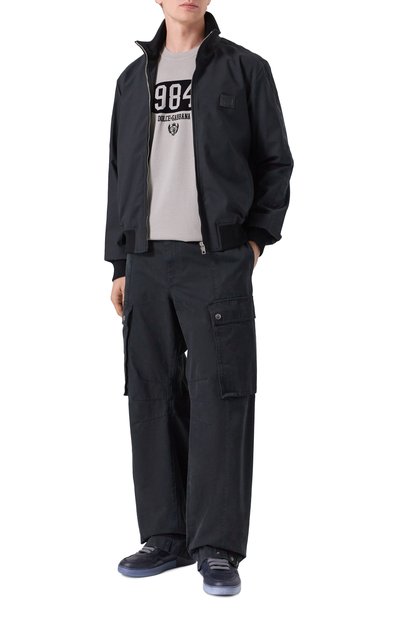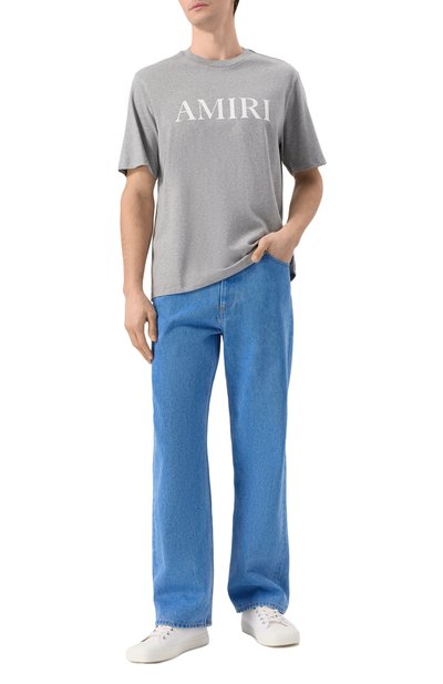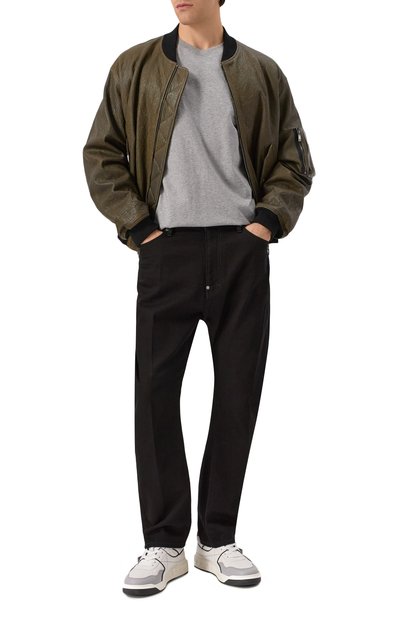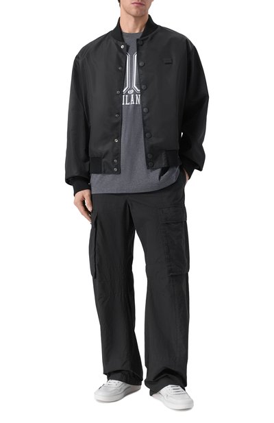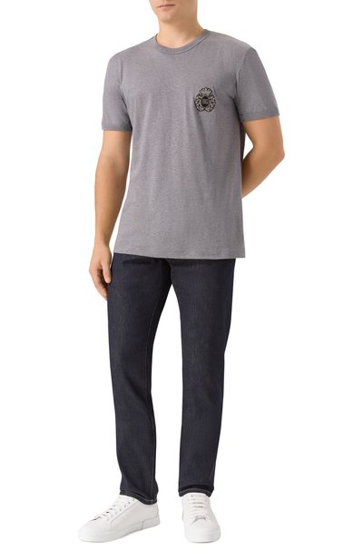 Футболку со спущенной линией плеч сшили из джерси на основе чистого хлопка. Модель украсили логотипом в цветах ленты Web и эмблемой Double G.