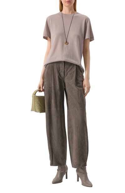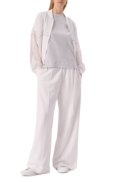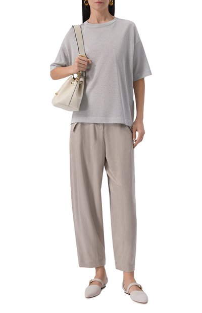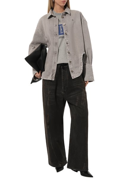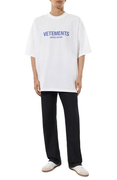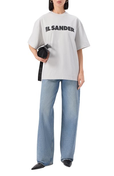 Футболку из ламинированного хлопкового джерси украсили принтом Gucci vintage. Модель со слегка удлиненной спинкой дополнили небольшими боковыми разрезами.