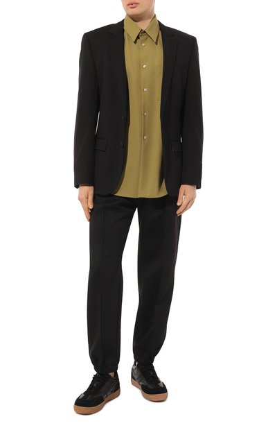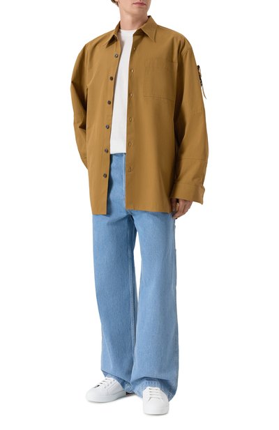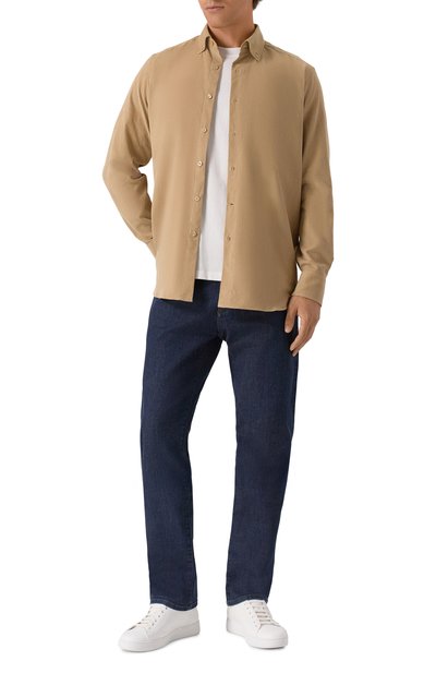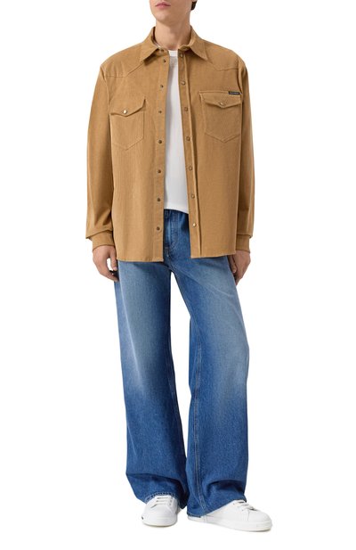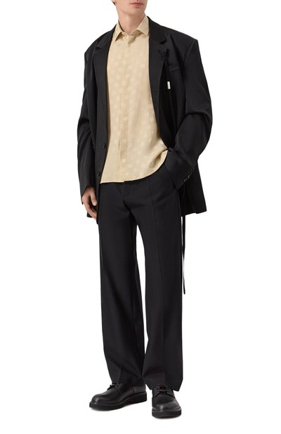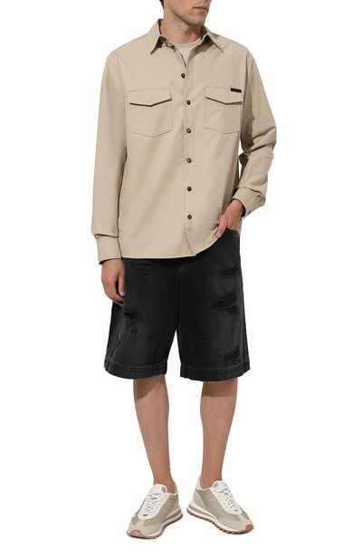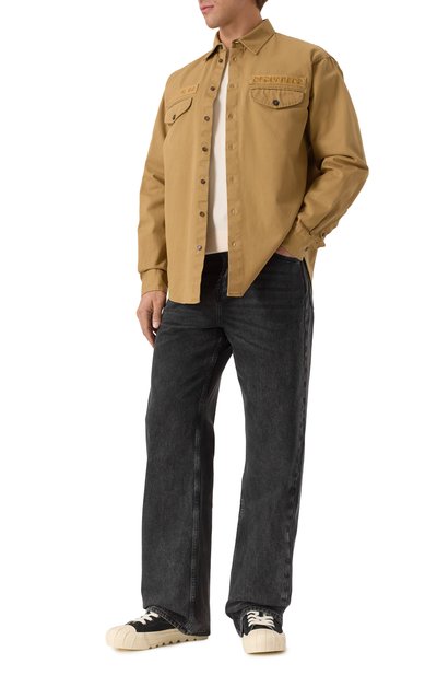Для создания рубашки использовали хлопковое пике. Контрастным полоскам по краю воротника в рубчик вторит вышитая эмблема Double G на нагрудном кармане.