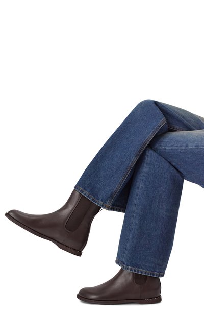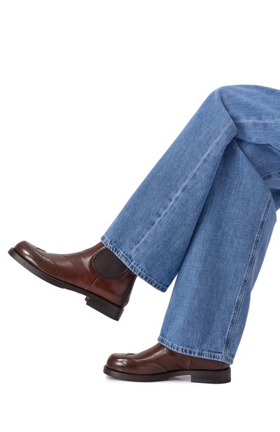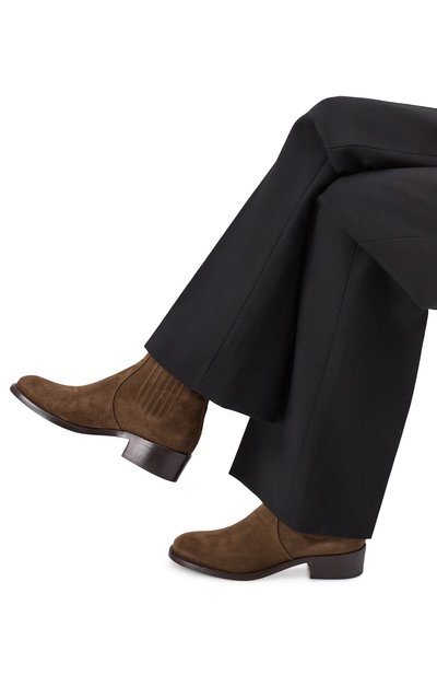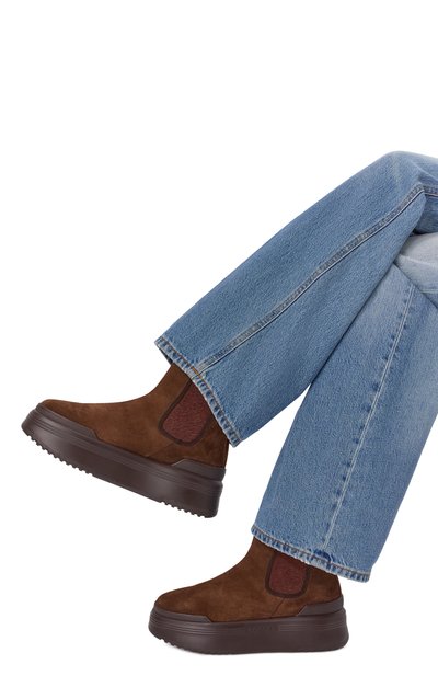 Замшевые челси Andrea Beat на литой подошве с квадратным каблуком дополнили короткой петлей на голенище. Фигурные накладки на мысе и заднике подчеркнули перфорированным узором.