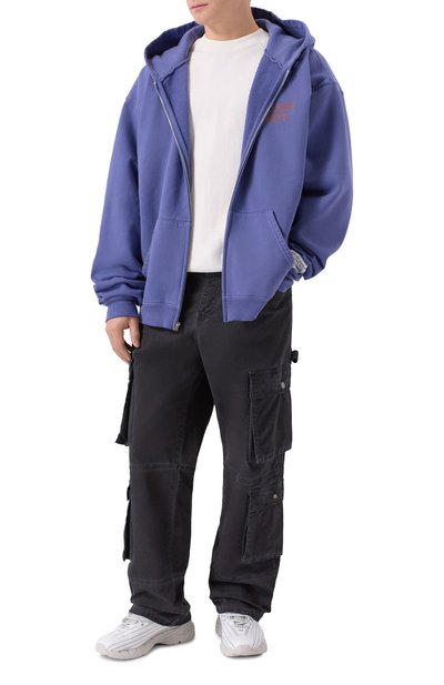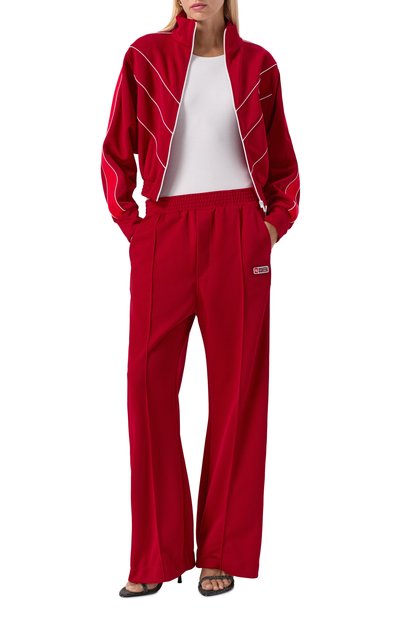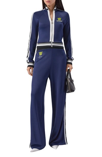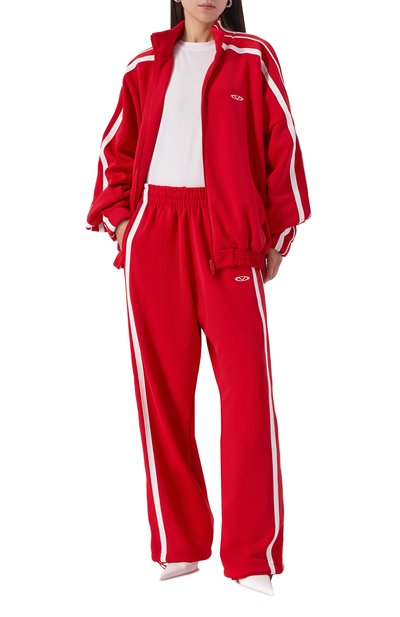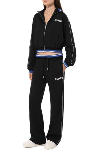 Толстовку Tuta с высоким воротником-стойкой и спущенной линией плеч сшили из полиэстера. Модель с эластичным поясом и контрастными вставками на рукавах украсили диагональными полосками и брендированной нашивкой спереди.