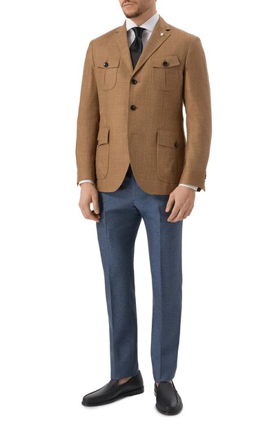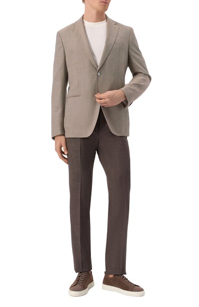 Брюки Globe со стрелками выполнили из шерсти с добавлением кашемира и эластана. Изделие дополнили двумя боковыми и парой задних карманов.