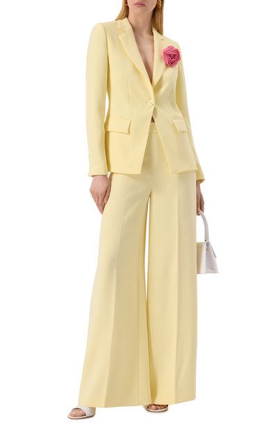 Широкие брюки с регулируемым поясом кулиской и боковыми карманами выполнили из хлопкового трикотажа с флисовой изнанкой. Сзади модель декорировали вышитым в тон логотипом.