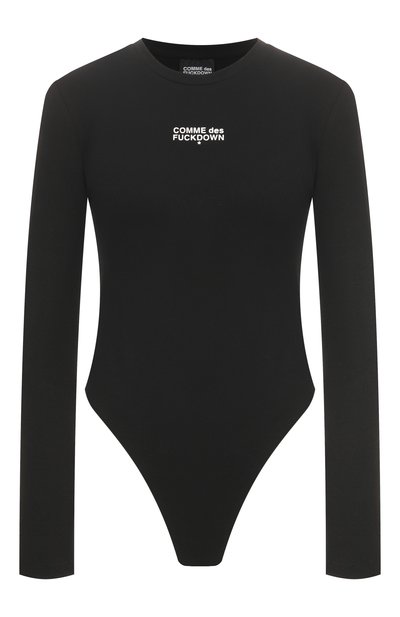 Боди с круглой горловиной в рубчик выполнили из эластичного хлопкового трикотажа. Спереди модель с застежкой внизу украсили контрастным логотипом.