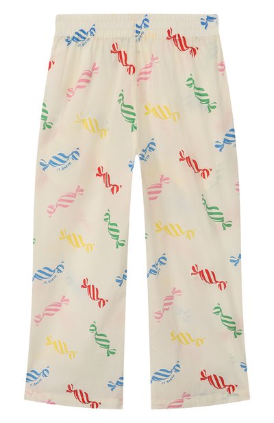 Брюки из хлопкового трикотажа дополнили карманами по бокам и эластичным поясом, продублировав его контрастной нейлоновой вставкой. Снизу брючин, на одной из которых напечатали логотип, предусмотрели кулиски.