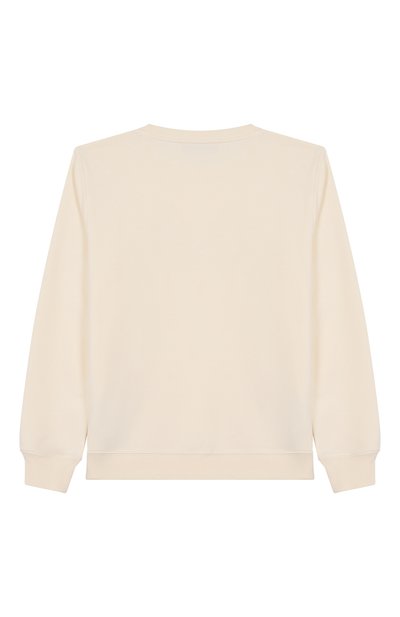 Свитшот с отделкой в рубчик выполнили из хлопкового трикотажа. Спереди, на рукавах и спинке модель декорировали брендированными графическими принтами. В комплекте – брелок с подвеской-эмблемой.