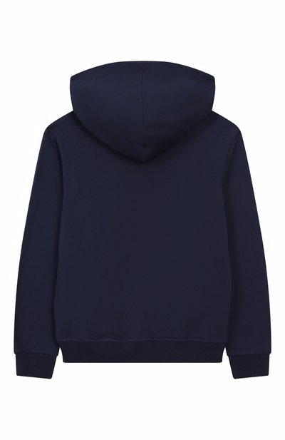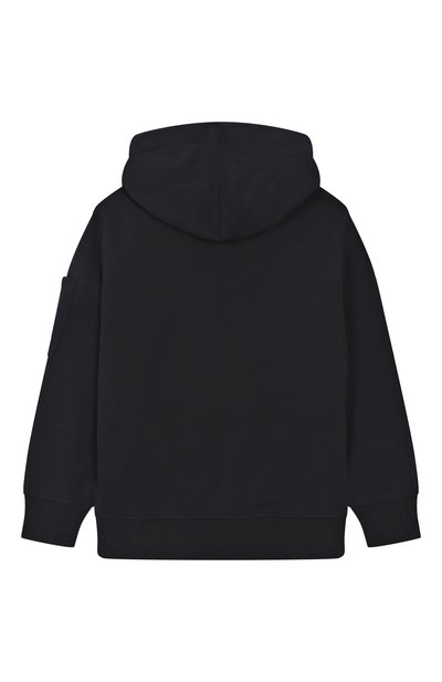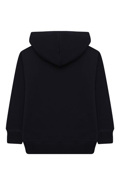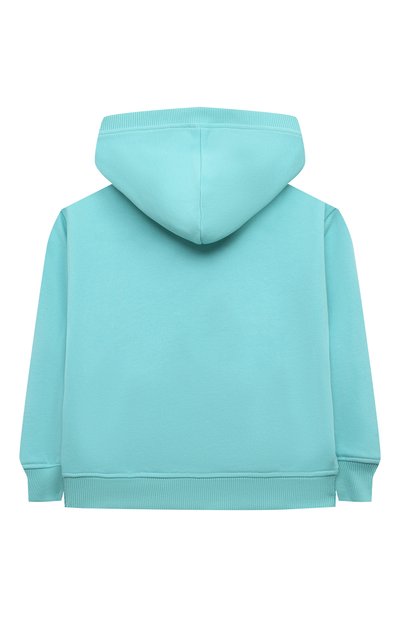 Для изготовления худи использовали хлопковый футер. Модель с поясом и манжетами в рубчик украсили фирменной эмблемой-эмодзи и текстовым принтом.